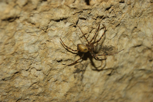 Meta menardi affectionne les milieux obscurs et humides aux températures assez stables, tels que grottes, mines, caves et souterrains. Dans ces sites de faible activité, elle peut vivre 2 à 3 années et de ce fait atteindre une envergure assez conséquente de 6 à 8 cm. Pour élever sa progéniture, la femelle confectionne un cocon en forme de baluchon qu'elle suspend au plafond souvent dans une portion encore faiblement éclairée des cavités. Il arrive qu'une partie des juvéniles, attirés par la clarté, parte coloniser de nouveaux territoires, assurant ainsi un brassage génétique entre cavités.
